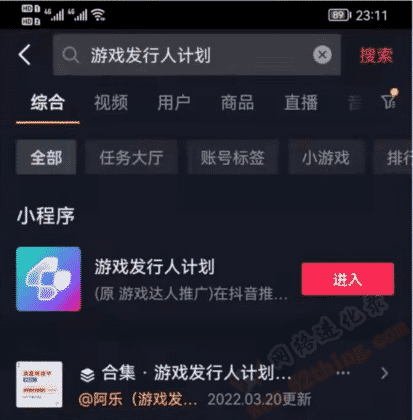 打开抖音搜索输入游戏发行人计划。然后进入,点进去看下面页面截图。