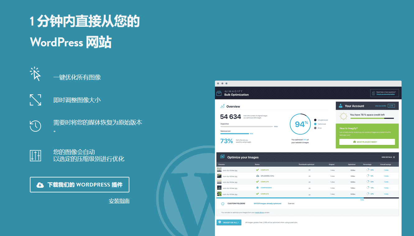 我这里使用了一款国外的付费图片优化插件:imagify,它也有免费版,但每月优化图片大小在20M上限,对于全网共5000多张的站点来说,根本不够用。后来还是斥资9.9美金购入!