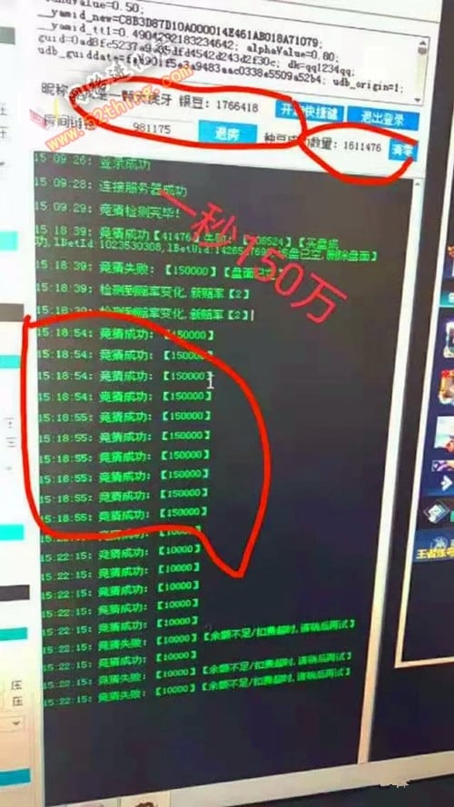 *知道结果后,我们利用秒盘软件,代替人工操作,快速下注银豆,进行正确的押注,从而达到稳赢的目的。
