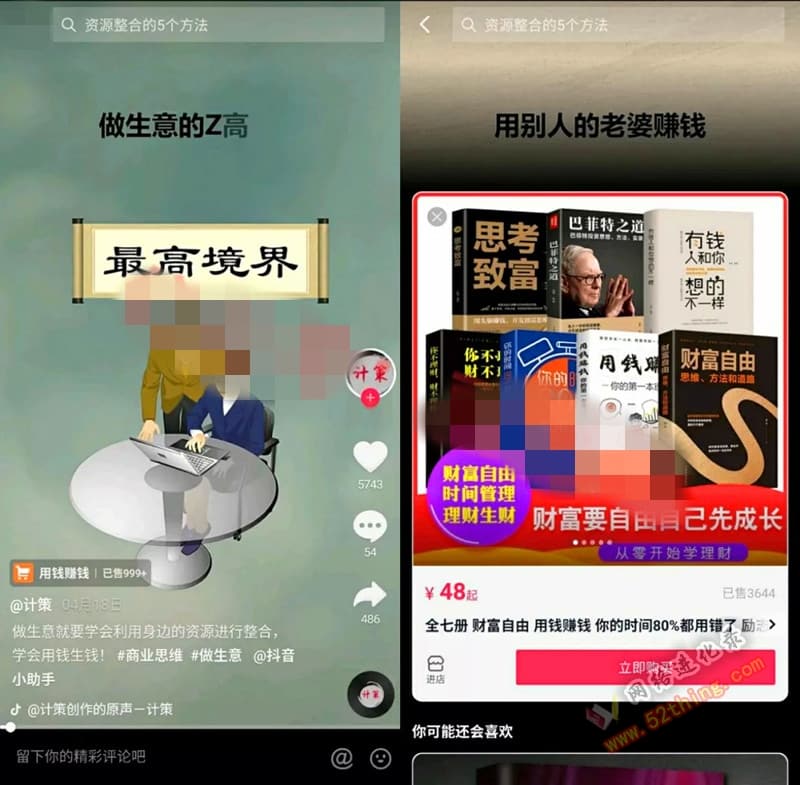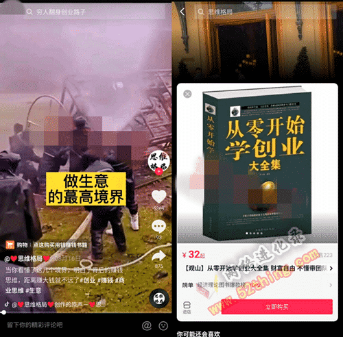 举个例子,比如下面这个是带货卖书的视频,目前点赞量是5千+,他总共卖出3600本书,从视频素材我们可以看出这个作品是属于精心制作的图片拼接而成。